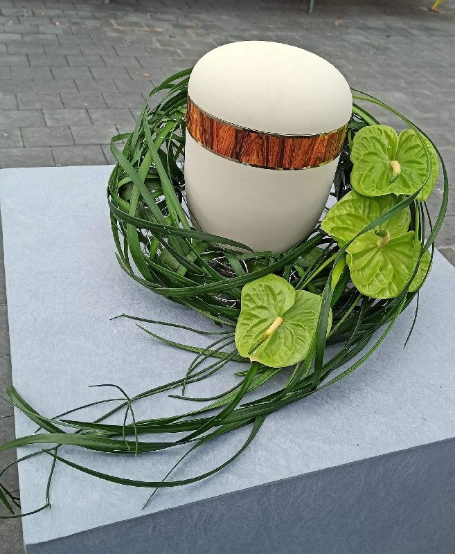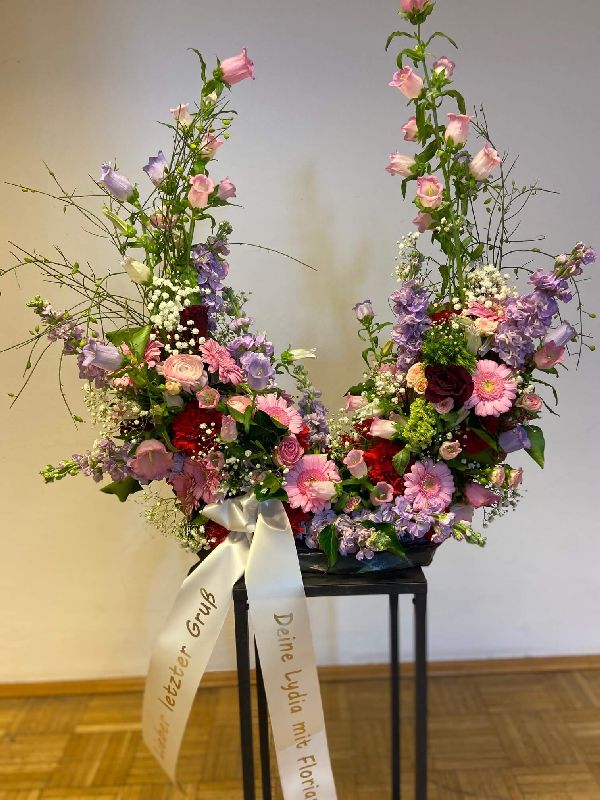 Ob schlichte Trauerbouquets, aufwendig gearbeitete Sargbouquets oder stilvolle Urnendekoration – wir gestalten unsere Trauerfloristik immer mit höchster Sorgfalt, viel Feingefühl und Respekt vor dem Anlass. In einem persönlichen Gespräch klären wir gemeinsam, welche Blumen und Farben die Persönlichkeit des Verstorbenen widerspiegeln und welche besonderen Wünsche Sie haben.